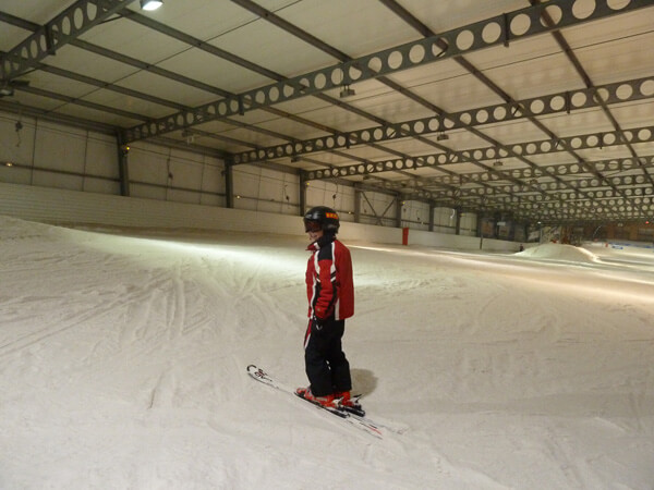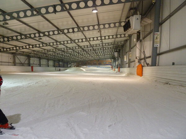 Doch wenn man auf dem Weg in die Skihalle ist, sieht man als erstes riesige, leere Parkpläze, auf denen circa 1000 Autos stehen könnten. Das Äußere der Skihalle erinnert an eine Sporthalle, nur länger und einen Hang hinauf gebaut. Wenn man reingeht, sieht man zwei Restaurants, eine Pizzeria und eine Bar. Dahinter kommen die Kassen und ein Büro der Hallenleitung. Daran schließen sich der Ski- und Snowboardverleih und die Umkleiden an. Dann erreicht man die eigentliche Halle. Dort gibt es eine Schlittenbahn für Kleinkinder (nichts gegen kleine Kinder) und die Anfängerpiste mit dem „Zauberteppich“. Schließlich gibt es noch die große Piste. An deren Seite gibt es diverse Rampen und Rails und einen Schlepplift. Auf der Piste gab es sogar schon ein FIS-Slalom.