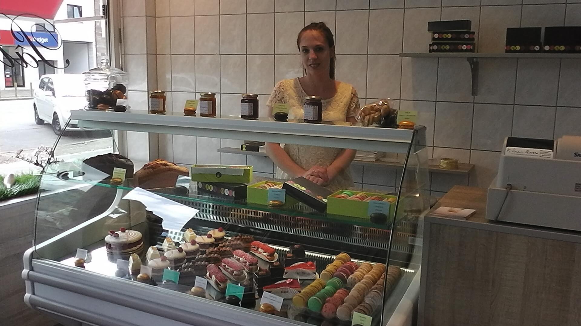 Une nouvelle pâtisserie a ouvert à Sarrebruck dans la Mainzerstraße. Le nom du pâtissier ? Quanah Schott. Sa spécialité ? Les macarons. Mais on peut aussi y trouver des éclairs et toutes sortes de délicieux gâteaux. Nous sommes allées visiter sa pâtisserie pour l’interviewer sur son métier. Il nous a offert de goûter ses macarons. Nous avons pris citron, fruits de la passion-chocolat et framboise-violette (le macaron du mois). Ils sont absolument divins.