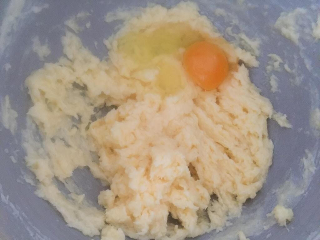 In another bowl, whisk the butter and the caster sugar together. Then, add the eggs one by one and mix well between each egg.