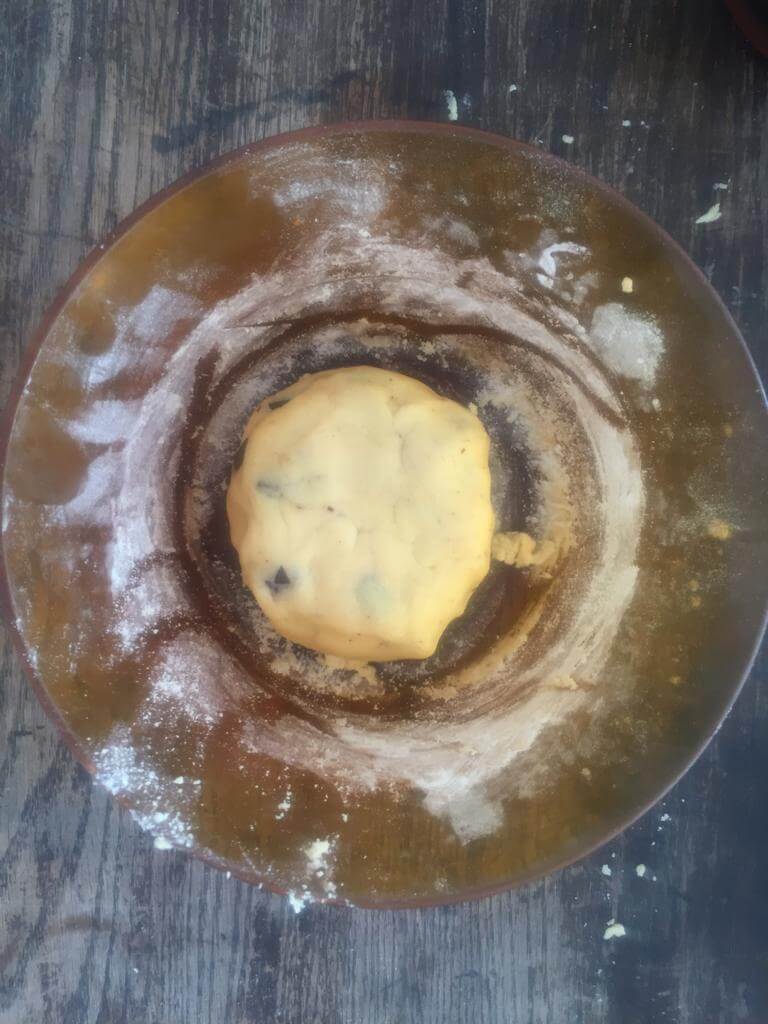 Make little balls with the dough and put them on a baking tray.